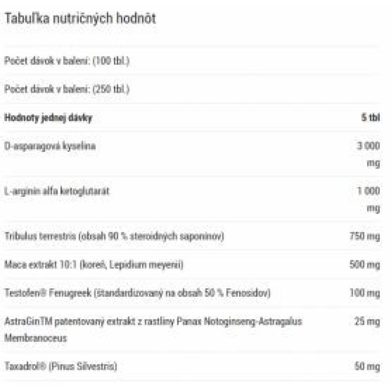 | Účinky | Zvýšení hladiny testosteronu, zvýšení svalové síly, zlepšení sexuálního zdraví |