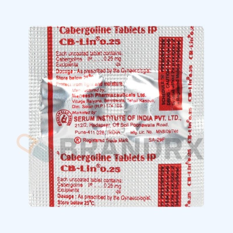 | Dávkování (lékařské) | Obvykle 0,25 mg až 1 mg dvakrát týdně při hyperprolaktinémii |